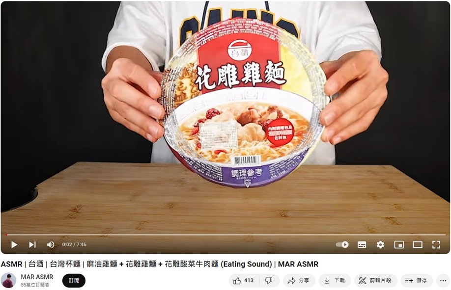 TTL instant noodle products are renowned globally for their rich broth, chewy noodles, and distinctive wine-infused ingredients. MAR ASMR, with its unique mukbang style, has gained a substantial following within the YOUTUBE community. This collaboration not only aims to introduce the product to a broader audience but also marks Tai Ting’s significant foray into the subcultural domain.