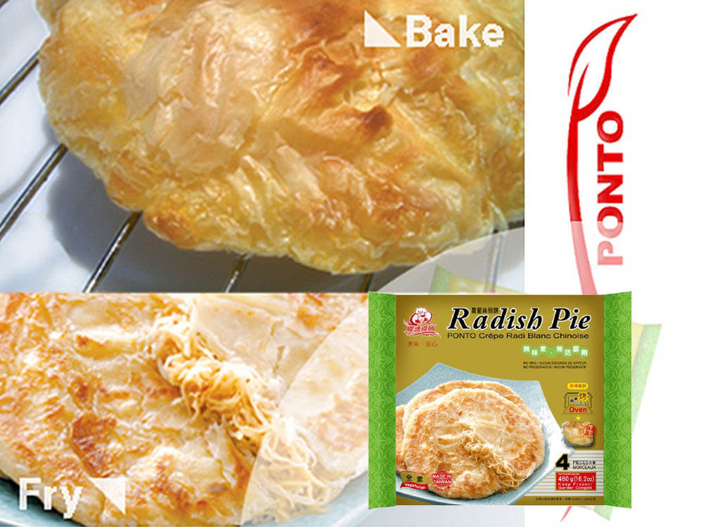 A rich pie filled with shredded radish, even for vegetarians. This would be a great choice for an appetizer or afternoon dessert!