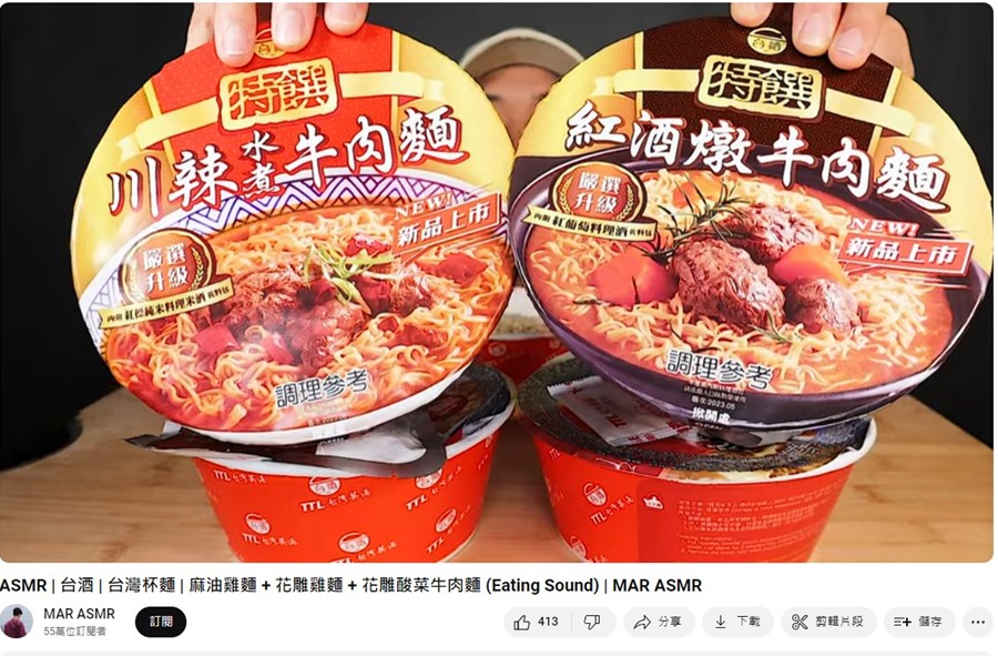 TTL instant noodle products are renowned globally for their rich broth, chewy noodles, and distinctive wine-infused ingredients. MAR ASMR, with its unique mukbang style, has gained a substantial following within the YOUTUBE community. This collaboration not only aims to introduce the product to a broader audience but also marks Tai Ting’s significant foray into the subcultural domain.